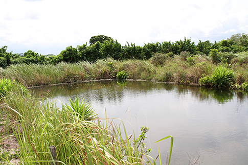 池の周りには熱帯地域の草木が鬱蒼と生い茂り、限りなく自然に近い環境であると見て取れます。